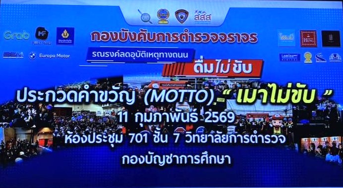 Tags Motto,รณรงค์เมาไม่ขับ,วิทยาลัยการตำรวจ,สสส.,โครงการสื่อสารรณรงค์ดื่มไม่ขับเพื่อลดอุบัติเหตุ