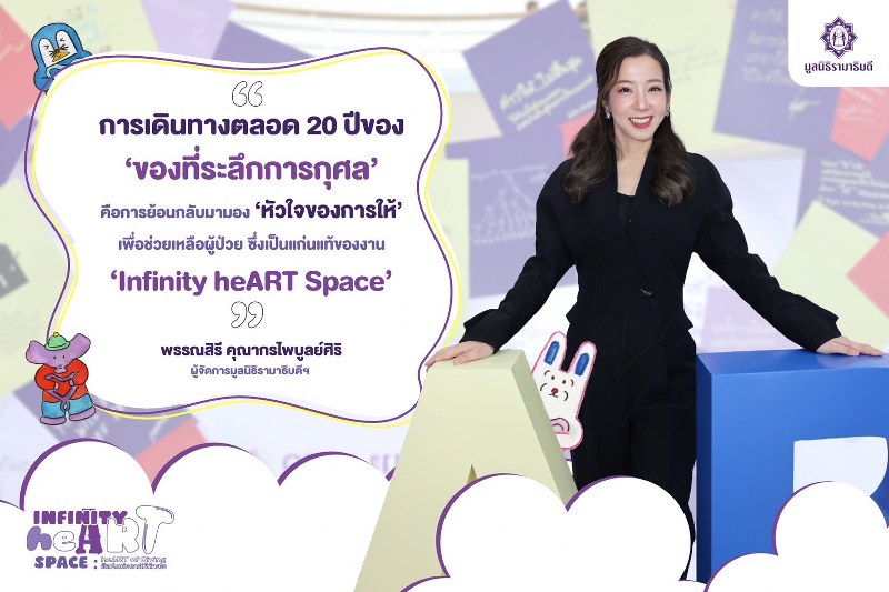พรรณสิรี คุณากรไพบูลย์ศิริ ผู้จัดการมูลนิธิรามาธิบดีฯ กล่าวถึงที่มาของการจัดนิทรรศการครั้งนี้ว่า “การเดินทางตลอด 20 ปีของ ‘ของที่ระลึกการกุศล’ เป็นมากกว่าหมุดหมายแห่งเวลา แต่คือการย้อนกลับมามอง ‘หัวใจของการให้’ ซึ่งเป็นแก่นแท้ของงาน ‘Infinity heART Space’ เราอยากให้พื้นที่นี้เป็นพื้นที่ของ ‘ผู้ให้’ ทุกคน เพราะเราเชื่อว่าทุกคนล้วนมีหัวใจของการให้ บางคนเลือกสนับสนุนของที่ระลึกเพราะชื่นชอบดีไซน์ หรือสะสมคาแรคเตอร์ที่รัก ทุกการสนับสนุนของที่ระลึกการกุศลของทุกคน คือ ‘การให้‘ ที่ได้ช่วยเหลือผู้ป่วยได้ช่วยเหลือคณะแพทยศาสตร์โรงพยาบาลรามาธิบดี”