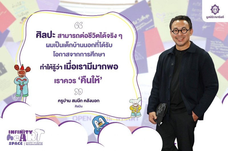 มาร่วมต่อยอดพลังแห่ง “คำว่าให้…ไม่สิ้นสุด” ในอีเวนต์สุดพิเศษแห่งปี “Infinity heART Space” พื้นที่ที่ทุกหัวใจจะได้ส่งต่อความอบอุ่นของการให้ ตั้งแต่วันนี้ – 23 พฤศจิกายน 2568 ณ โถงชั้น 1 หอศิลปวัฒนธรรมแห่งกรุงเทพมหานคร ปทุมวัน กรุงเทพฯ