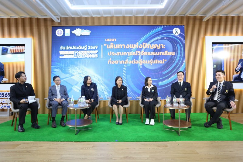 ต่อมา เป็นการเสวนา “เส้นทางแห่งปัญญา: ประสบการณ์วิจัยและบทเรียนที่อยากส่งต่อสู่คนรุ่นใหม่” โดย นักวิจัยดีเด่นแห่งชาติ ประจำปี 2569 ทั้ง 6 ท่าน จาก 5 สาขาวิชาการ ดังนี้