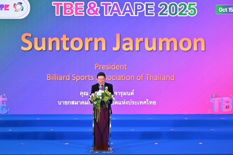 นายสุนทร จารุมนต์ นายกสมาคมกีฬาบิลเลียดแห่งประเทศไทย (BSAT) กล่าวถึงความร่วมมือระหว่างภาคธุรกิจท่องเที่ยวและกีฬาของประเทศไทยและจีน ในการจัดงาน Thailand Amusement & Attraction Parks Expo (TAAPE) 2025 และงาน Thailand Billiards Expo (TBE) 2025 ซึ่งจัดขึ้นครั้งแรกในประเทศไทย ถือเป็นสองงานสำคัญในการส่งเสริมอุตสาหกรรมท่องเที่ยวและกีฬาที่ยิ่งใหญ่และครบวงจรระดับภูมิภาค และจะเป็นอีกก้าวที่สำคัญของวงการบิลเลียดในประเทศไทยและภูมิภาคเอเชียตะวันออกเฉียงใต้ ที่ได้มีเวทีในการนำเสนอผลิตภัณฑ์ นวัตกรรม และเทคโนโลยีด้านอุปกรณ์กีฬาในกลุ่มคิวสปอร์ต อาทิ สนุกเกอร์ พูล และบิลเลียด จากทั้งผู้ประกอบการในประเทศไทยและจากนานาประเทศทั่วโลก