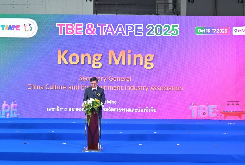 นายคง หมิง เลขาธิการสมาคมอุตสาหกรรมวัฒนธรรมและบันเทิงแห่งประเทศจีน กล่าวเสริมถึงการสนับสนุนการจัดงาน TAAPE และ TBE ถือเป็นหนึ่งในโครงการสำคัญภายใต้ “แผนปฏิบัติการ Thousands of Sails Go to Sea Action Plan และยังเป็นหมุดหมายสำคัญของการพัฒนาอุตสาหกรรมวัฒนธรรมและการท่องเที่ยวจีน–ไทย ที่กำลังเปลี่ยนผ่านจาก “ความร่วมมือเชิงเดี่ยว” ไปสู่ “ระบบนิเวศทางอุตสาหกรรมที่บูรณาการกันอย่างแท้จริง” ในฐานะที่เป็นการจัดงานในชุดกิจกรรมเฉลิมฉลองครบรอบ 50 ปี ความสัมพันธ์ทางการทูตจีน–ไทย งานนี้จึงมีความหมายลึกซึ้ง ทั้งในแง่ของการสืบสานมิตรภาพและการแสวงหาการพัฒนาอย่างยั่งยืนร่วมกัน